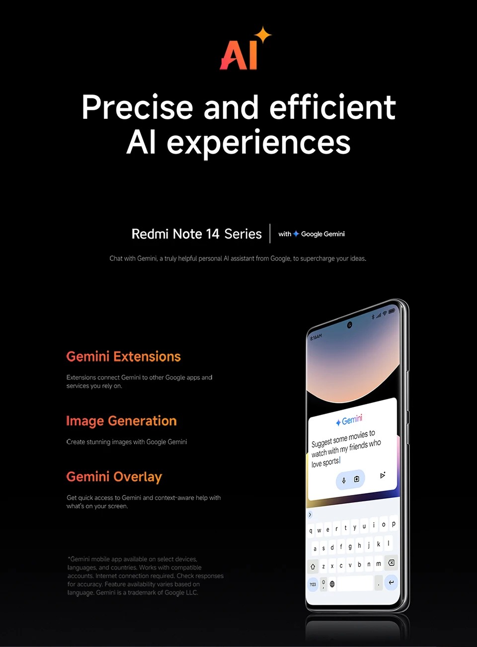 Other ----------- NFC , Bluetooth 5.4, IP68 dust and water-resistant*, Circle to Search with Google, Google Gemini, AI Interpreter, AI Notes, AI Recorder, AI Subtitles, AI Film, AI image editing